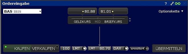 Im Bild: Erstellung einer Limit Order mit der TWS 4.0.